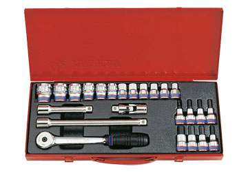 - Bộ đầu tuýp và bộ đầu vít 17 cái hệ mét Kingtony 2517MR